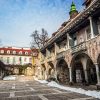 Plečnik je pri prenovi nekdanjega samostanskega poslopja uporabil načelo enotnosti različnega. Kompleks je nadgradil s poudarkom renesančnih in baročnih elementov. Notranjost fasade poslopij je dekoriral s sodobnimi reliefi v sgraffito tehniki s sodobnimi in klasičnimi motivi. Značilna Plečnikova uporaba naravnih materialov in lesa tu sobiva z ostrimi geometrijskimi oblikami in naravnim kamnom. Dvorišče je tlakoval z dekorativnimi betonskimi ploščami.
